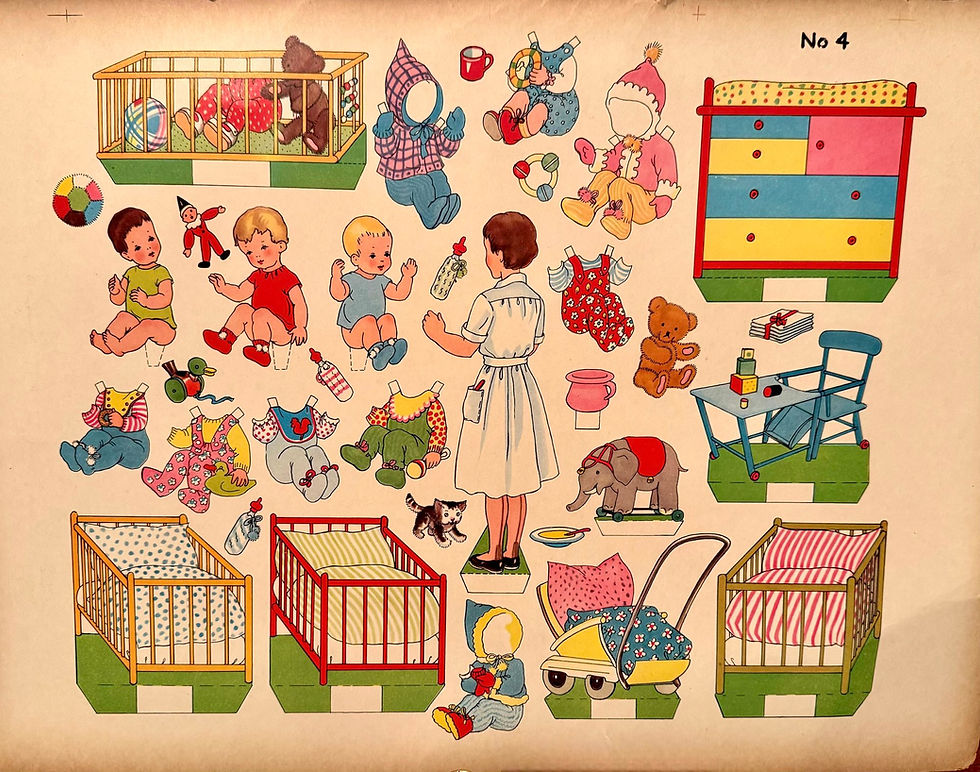 מיכל – כרזה נדירה מסדרת משחקי בובות נייר, אמצע המאה ה־ 20